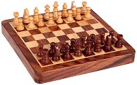 Понякога шахът се превръща в много повече от игра. Докато за едни предстоят първи стъпки в местенето на фигури и обмислянето на стратегически ходове, за други шахът вече е страст и любимо хоби. А за трети може да е дори и начин на живот, протичащ в турнири. Този комплект е подходящ за всички почитатели на класическата настолна игра. Той се състои от игрално поле и 32 фигури от дърво. Игралното поле служи и за кутия за съхранение, която се затваря посредством магнити. Височината на царя е 3.5 cm, а размерите на игралното поле са 18 x 18 cm. ... |