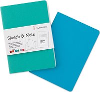 Комплектът Sketch and Note от Hahnemuhle съдържа 2 скицника. Всеки от тях разполага с по 20 листа с плътност 125 g/m 2. Хартията има естествено бял цвят и осигурява красив контраст и градация на цветовете. Има отлична абсорбция на графичните материали, позволяваща бързо, леко и лесно скициране. Подходяща и за чертежи и бележки с химикалки от всякакъв вид. Перфектна за всякакви сухи техники, както и за работа с по-твърди моливи. Скицниците за графика и скициране имат издръжливи прошити цветни подвързии. Към всеки скицник е включен облицован стикер за индивидуално етикетиране на собственика. Форматът им позволява да ги ...