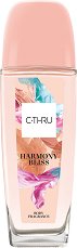Парфюмът от "C-Thru" притежава свеж плодово-цветен аромат. Той е създаден да вдъхновява и мотивира младите жени да откриват щастието и да виждат положителните страни на живота във всеки един момент. Парфюмът "C-Thru Harmony Bliss" носи чувственост и жизнерадост на притежателката си. Композицията се разкрива със свежи върхови нотки круша, мандарина и ягодово сорбе. В сърцето е комбинация от розови листенца, магнолия и жасмин. Базата е от кашмирено дърво, кехлибар и бял мускус, които внася усещане за топлина и комфорт. Ароматна композиция на парфюма "C-Thru Harmony Bliss": Върхови нотки: ... |