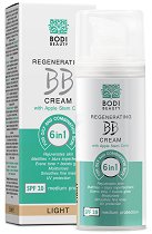 Нежната и деликатна, немазна формула атакува 6 несъвършенства на кожата. Матира и контролира омазняването. Изравнява тена и придава блясък като идеално покрива недостатъците. Регенерира и трайно хидратира. Заглажда фините бръчки в резултат на внимателно подбрани най-съвременни активни компоненти. Защитава от вредните UV-лъчи със слънцезащитен фактор SPF 20. BB кремът формира тънък и лек цветен филм върху кожата, който контролира мастната секреция, покрива перфектно несъвършенствата, като придава чист и сияен вид на лицето. Кожата е стегната и невероятно плътна, гладка и млада!