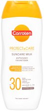 Слънцезащитното мляко на "Carroten" е подходящо за нетолерантна към слънцето кожа. Формулата му е разработена с иновативна хидратираща технология Aqua Mimic, която имитира естествените овлажняващи механизми в организма и задържа оптимални нива на влажност на кожата. Благодарение на леката му водоустойчива текстура се абсорбира бързо от кожата и придава мекота. Фотоустойчивите IR, VL, UVA и UVB филтри я защитават от слънчево изгаряне и предотвратяват преждевременното стареене на кожата. Със своя слънцезащитен фактор SPF 30, ... |