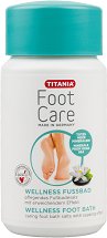 Солите на "Titania" облекчават умората и болките в стъпалата след натоварване. Те омекотяват, освежават и ароматизират. Съдържат морска сол, която ексфолира, тонизира и енергизира кожата на ходилата, премахвайки натрупаното напрежение и стрес. Формулата е обогатена и с екстракт от невен, който овлажнява и подобрява състоянието на напуканите пети.