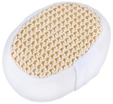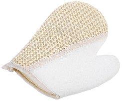 След намокряне, гъбата омеква. Има влакнеста структура. За улеснение при употреба, гъбата има лента, за която може да се наниже дланта. Изработена е от луфа и хавлиен плат. ... |
