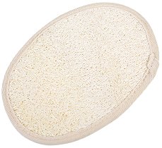 След намокряне, гъбата омеква. Има влакнеста структура и е с елипсовидна форма. Изработена е от луфа, покриваща цялата една страна на скръбъра, като гърбът ѝ е изцяло от хавлиен плат и има пришита ластична лента, с цел улеснение при употреба и по- лесно прилягане ... |