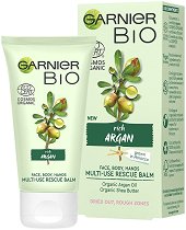 Специалистите от "Garnier" са разработили универсален био балсам, който дълбоко хидратира и подхранва сухата и загрубяла кожа на лицето, ръцете и тялото. Формулата му е обогатена с био арганово масло, което притежава хидратиращи, подмладяващи и подхранващи свойства. Включеното био алое вера помага за задържане на влагата в нея, прави я мека и еластична. Добавени са още масло от ший и витамин E, които имат регенериращи, овлажняващи и антиоксидантни свойства.