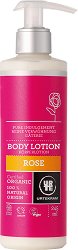 Лосионът за тяло от "Urtekram" ще подхрани дълбоко кожата ви и я ще обгърне с приятен аромат на рози. Формулата е обогатена с екстракт от роза Дамасцена, който има хидратиращи, подмладяващи и регенериращи свойства. Вложеният екстракт от алое вера действа овлажняващо, успокояващо и подхранващо върху кожата. Екстрактът от дъхаво мушкато има антисептични, противовъзпалителни и антиоксидантни свойства, а екстрактът от кората на магнолия има подмладяващ ефект.