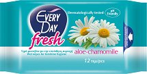 Интимните кърпички на "EveryDay" поддържат дълготрайната свежест в интимната зона. Тяхната формула осигурява защита срещу неприятни миризми и продължително усещане на чистота. Това става благодарение на активните съставки във формулата им - алое вера и екстракт от лайка, които имат противовъзпалителни и антибактериални свойства. Кърпичките почистват деликатно и вие усещате свежест през целия ден.