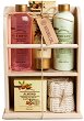 Поглезете себе си или любим човек с този луксозен комплект с козметика за тяло от "Scottish Fine Soaps". В него са включени душ гел, сапун, масло за тяло и крем за ръце със свеж флорален аромат. Включеният душ гел и сапунът грижовно почистват и освежават кожата на тялото. Маслото за тяло дълбоко я хидратира и подхранва, благодарение на вложените във формулата му масла от какао и кокос. Кремът за ръце прави кожата мека, гладка и еластична. В състава му са включени масла от ший, сладък бадем, какао и маслина. Всички продукти са обогатени с екстракт от лайка, който действа успокояващо, противовъзпалително и ...