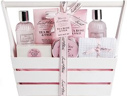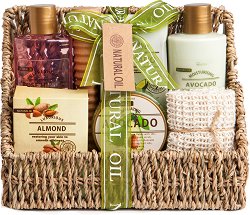 Зарадвайте специална дама и ѝ подарете релаксиращи SPA моменти с козметичния комплект от "IDC". Той включва душ гел, сапун, соли за вана, скраб, лосион за тяло, сизалена кърпа и дървен масажор. Продуктите са опаковани в декоративна плетена кошница. Душ гелът и сапунът почистват и освежават кожата, а скрабът я омекотява и изглажда. Солите за вана превръщат времето, прекарано в банята, в момент на истинска наслада за сетивата. Лосионът е обогатен с подхранващи и омекотяващи съставки. Козметиката има приятно и освежаващо ухание. ...
