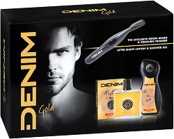 Комплектът от "Denim" е чудесен избор за подарък за любим мъж. Той съдържа душ гел и афтършейв от серията "Gold", както и електрически тример за оформяне на брада, мустаци и бакенбарди.