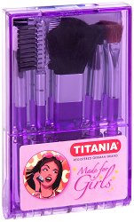 Специалистите на "Titania" ви предлагат комплект четки за грим, с който лесно ще поддържате безупречната си визия. Той съдържа всички необходими аксесоари за нанасяне на грима. Освен това има вградено огледало, за да бъде удобен за използване навсякъде и по всяко време. Комплектът е компактен и подходящ за носене в дамска чанта или козметичен несесер. ... |