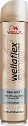 Лакът за коса на "Wella" осигурява ултра силна фиксация на прическата и я дарява с неустоим блясък. Формулата му е със съставки, които привличат светлината и я отразяват. По този начин косата придобива дълготраен и естествен блясък. Лакът помага за защита от UV лъчите. Благодарение на "Flex" технологията, косата се запазва гъвкава, не се слепва и е с естествен вид. Напръскана с лака, прическата Ви ще се задържи оформена в продължение на 24 часа.