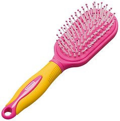 Общата дължина на четката е 25 cm. Върху главата ѝ, на мека гумена подложка, са разположени бодлички, на чиито краища има топчета. Това предпазва скалпа от разраняване при ресане, като в същото време масажира кожата на главата и подобрява кръвообращението. ... |