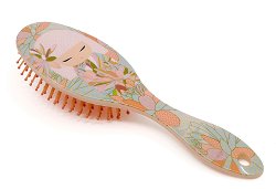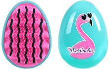 Четка от "Martinelia", която нежно разплита косата, без да я накъсва и скубе. Тя е подходяща за разресване на всеки тип коса. Може да се използва както върху суха, така и върху мокра коса. Ергономичната ѝ форма пасва в дланта, за удобен захват. Тя има гъвкави зъбци с различна височина, за да осигури гладко и лесно разресване и нежен масаж на скалпа. Четката има забавен дизайн с илюстрация на фламинго.