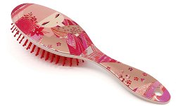 Четката за коса от "Kimmidoll" е изработена от пластмаса и каучук. Топчетата по върхове предпазват скалпа от надраскване и увреждане на фоликулите на косъма. Удобна за употреба, тя успешно заменя традиционния гребен.