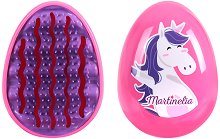 Четка от "Martinelia", която нежно разплита косата, без да я накъсва и скубе. Тя е подходяща за разресване на всеки тип коса. Може да се използва както върху суха, така и върху мокра коса. Ергономичната ѝ форма пасва в дланта, за удобен захват. Тя има гъвкави зъбци с различна височина, за да осигури гладко и лесно разресване и нежен масаж на скалпа. Четката има забавен дизайн с илюстрация на еднорог.