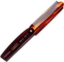 Сгъваем гребен от "Kent", който е подходящ за мъже и е лесен за пренасяне. Той притежава клипс, с който може да се захваща от вътрешната страна на джоба. Подходящ е за разресване на суха и мокра коса. Гребенът е произведен от висококачествен естествен материал - ацетилцелулоза, който е гладък, еластичен и достатъчно твърд при ресане. Зъбците му са изрязани и шлифовани ръчно, което е гаранция, че няма частици и дефекти, които създават проблем при разресване. Гребенът гарантира гладко и безпроблемно ресане и оформяне на прическата. Дължината му в сгънато състояние е 100 mm. ...