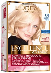 Красивата коса е здравата коса! Затова специалистите на "L'Oréal Paris" са разработили боята "Excellence" по иновативна технология, осигуряваща максимална защита. Формулата ѝ е базирана на активните съставки про-кератин и серамид, известни със своите мощни възстановяващи и укрепващи свойства. Подсилена с Ionene G, технологията достига до дълбочината на косъма и трайно остава там, за да осигури дълготрайна защита. Активните съставки проникват до сърцевината на косата и я правят силна от корена до върха. Богатият защитен крем обгръща всеки косъм и му придава жизнен цвят. Косата е съживена, ... |