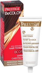 Специалистите от "Prestige" създават полутраен тонер, който нежно подхранва и оцветява косата. Подходящ е за естествена или боядисана коса, като се грижи да покрие побелялата коса. Формулата му е обогатена с 100 % чисти и натурални масла, екстракт от коприва и витамин F, които хидратират косъма от корена до върха и му придават блясък и мекота. Трайността на тонера е от 6 до 8 измивания*, като можете да повторите употребата, след като ефектът му премине.