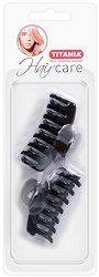 Комплектът щипки за коса от немската компания "Titania" се състои от 2 големи щипки в кръгла заоблена форма. Всяка има по 8 големи зъбци в долната си част, което ги прави стабилни при захващане на косата. Щипките са с дължина 6.5 cm. Практично средство за оформяне и фиксиране на желаната стилна прическа. ...