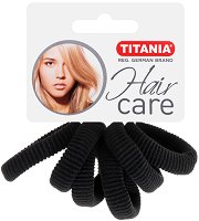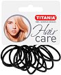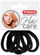 Ластици за коса от немската компания "Titania", които са в комплект от 6 броя в опаковка. С тях можете лесно да приберете косата в желания тип опашка. Предлагат се в черен цвят. Те са плътни и устойчиви, с изчистен дизайн - дебелината им е 5 mm и диаметър около 4.5 cm в неразпънато състояние. ... |