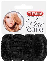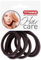 Ластици за коса от немската компания "Titania", които са в комплект от 4 броя в опаковка. С тях можете да вържете косата си стабилно в опашка. Предлагат се в черен, кафяв и сив цвят. Те са плътни, устойчиви и с изчистен дизайн - дебелината им е около 2 cm и диаметър 4.5 cm в неразпънато състояние. ... |