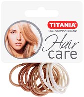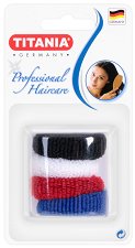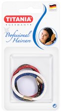Ластици за коса от немската компания "Titania" са в комплект от 3 цвята. Цветовете са подходящи за светло и тъмно руси коси, ако държите ластика Ви да не се откроява. С тях можете да създадете разнообразни прически. Всичко зависи от Вашето въображение. Те се предлагат в различни размери. Малките са с дебелина около 1 mm и диаметър 3 cm в неразпънато състояние. Средните са с дебелина 3 mm и диаметър 4.5 cm, а големите са с дебелина 5 mm и диаметър също 4.5 cm. ... |