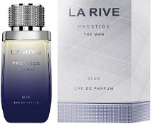 Специалистите на "La Rive" ви представят ориенталския аромат "Prestige Man Blue". Връхните нотки на бергамот, лимон и мандарина придават свеж, цитрусов мирис. Сърцевината на парфюма се състои от ухания на маслинови цветчета, меден нюанс на гаяк, примесен с дълбок и силен анасон, роза и горчиво-пикантен розмарин. Базисните нотки на тръпчив, дървесен кедър, амбра, мускус и бобова тонка, правят аромата неустоим и мъжествен.