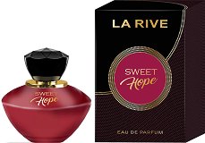 Парфюмът "Sweet Hope" от "La Rive" е сладък и завладяващ. Връхните нотки на чувствена слива, кокос и лек аромат на кайсия докосват сетивата ви. Оставете се на опияняващите цветни ухания на тубероза, жасмин, момина сълза и малък щрих кимион. Базовите нотки, които завършват композицията, са на бадем, топъл мускус, дълбок, зелен аромат на сандалово дърво и сладка ванилия.