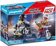 Конструкторът е от серията City Action, където ще откриете още продукти на темата. ... Децата ще се потопят в полицейски приключения с конструктора от Playmobil. Състоящ се от 27 части, комплектът включва 2 мини фигурки на полицай и крадец, мотоциклет, велосипед, каска с визьор, ръкавици и бижута. Малчуганите могат да пресъздадат вълнуващо полицейско преследване, помагайки на полицая да залови крадеца. Фигурките имат подвижни ръце и могат да се свиват в областта на таза. Всяка фигурка е с височина 7.5 cm. ... |