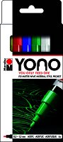 Универсалният акрилен маркер YONO от Marabu разполага с объл връх, позволяващ равномерно нанасяне на линия между 0.5 - 1.5 mm и работи със светлоустойчиво мастило на водна основа. Подходящ е за писане, маркиране, рисуване и декориране върху гладки, порести и прозрачни повърхности - хартия, картон, мукава, дърво, текстил, пластмаса и метал. На гладките, неабсорбиращи основи нарисуваното може да се избърше с влажна кърпа. Декорациите върху текстил могат да се фиксират във фурна за 8 минути на 150°С. Начин на употреба: Преди първата употреба разклатете за минута маркера със затворена капачка. Ще чуете как гилзата ... |