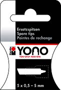 Резервните накрайници от Marabu се предлагат в компактна опаковка от 5 броя, за да са винаги под ръка в случаите, когато маркерът започне да се износва. Те са подходящи единствено за работа с маркерите от серията YONO. Имат обла форма с дебелина 0.5 - 1.5 mm (bullet nib) - твърдо перо, чудесно за очертаване, рисуване и запълване на малки площи с прецизно оцветяване. Лесни са за подмяна - с помощта на пинсети внимателно се издърпва перото и се поставя новото. ... |
