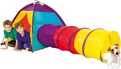 Цветната палатка с тунел е подходяща за разнообразни игри и включване в трасета с препятствия. Изработена е от орталион, лека и удобна за съхранение след сгъване и се сглобява лесно. Дължината на тунела е 174.5 cm, диаметърът му е ∅ 44 cm, а палатката е с размери 104 / 104 / 94 cm. ... |