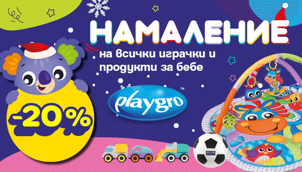 Сега, всички продукти Playgro се предлагат със специално намаление от 20%. Разгледай и избери най-подходящия подарък за своето дете.