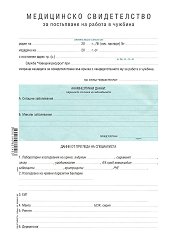 Медицинско свидетелство за работа в чужбина 100 броя, офсетова хартия |
