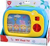 Детската занимателна играчка My First TV от PlayGo е създадена специално за най-малките, за да превърне първите им игри в цветно и забавно преживяване. С форма на телевизор и весели анимационни картинки, играчката привлича вниманието на бебето и стимулира сетивата му още от най-ранна възраст. Играчката разполага с бутон за включване и изключване, а при завъртане на кръглия бутон се възпроизвеждат забавни мелодии и картинките на екрана започват да се движат. Ярките цветове, динамичните изображения и приятните звуци подпомагат развитието на зрителните и слуховите възприятия, както и координацията между ръцете и очите. ... |