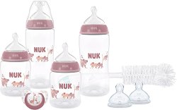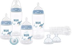 Комплект за новородено NUK Temperature ControlС шишета, биберони, залъгалка и четка, от серията First Choice Доставка: