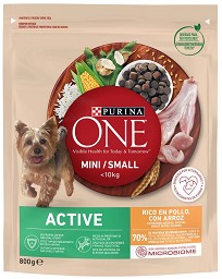 Суха храна за активни кучета Purina One Active0.8 и 1.5 g, с пилешко и ориз, от серията Purina ONE MINI, за дребни и малки породи в зряла възраст Доставка: