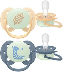 Флуоресцентни ортодонтични залъгалки Philips Avent Nighttime Plant-Based2 броя, с кутия за съхранение, от серията Ultra Soft, 6-18 м Доставка: