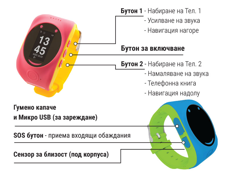 | SIM карта | Работи с micro SIM карти на всички български оператори Възможност за осъществяване на входящи и изходящи разговори по предварително определен списък с безопасни номера |