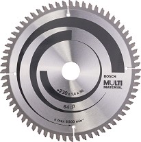 Циркулярният диск на Bosch от серията Multi Material е предназначен за рязане на алуминий, пластмаса, MDF и ПДЧ. Снабден е с висококачествени прецизно наточени карбидни зъби, които осигуряват бързо и лесно рязане. Основният диск е изработен от SK5 втвърдена стомана със стабилност на формата (> 40 HRC) и осигурява точност при работа.