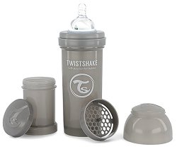 Бебешко шише Twistshake260 ml, с биберон, приставка шейкър и контейнер за сухо мляко Доставка: