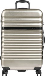 Bugatti е подходящ за бизнес пътувания или екскурзии. Той е изработен от ABS поликарбонатна смес, която е устойчива на надраскване, а вътрешната му част е от устойчив на разкъсване и лесен за поддръжка полиестер. Куфарът разполага с голямо основно отделение с цип, мрежесто отделение с цип, отделение с цип с разделителна функция, малко отделение с цип и 2 кръстосани презрамки. Той е защитен от сигурен двупосочен цип и TSA ключалка с шифър против кражба. Куфарът има 2 дръжки за носене в ръка, ергономична издърпваща се дръжка и 4 въртящи се на 360° колела, които се движат плавно.