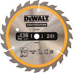 Циркулярен диск за дърво DeWalt ∅ 184 / 20 / 1.8 mm с 24 зъба от серията Construction DeWalt |