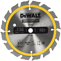 Циркулярен диск за дърво DeWalt ∅ 165 / 20 / 1.49 mm с 36 зъба от серията Construction |
