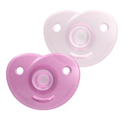 Залъгалките Soothie от Philips Avent са създадени с мисъл за естествения комфорт на новородените и малките бебета. Те са изработени от 100% медицински силикон и са с дизайн от 1 част, който осигурява безопасност, хигиеничност и изключителна гъвкавост. Специалната сърцевидна форма на предпазителя следва естествените извивки на лицето на бебето, като не притиска нослето и осигурява максимален комфорт при всяко засмукване. Конструкцията на биберона позволява на родителя да постави пръст в отвора, за да помогне на бебето да засуче и да засили емоционалната връзка по време на успокояване. Симетричният, кръгъл биберон е проектиран така, че да поддържа естественото развитие на устната кухина и да намалява натиска между езика и небцето.