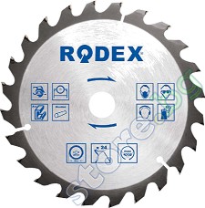 Циркулярният диск на Rodex е предназначен за рязане на дървен материал. Изработен е от стомана и разполага с 80 видирани зъба. Препоръчително е при използването на диска да се носят защитни очила, ръкавици и антифони.