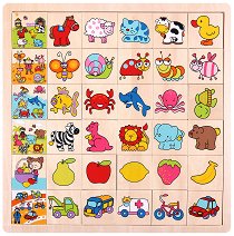 Когато детето подреди кубчетата по големина ще се образува пирамида. От едната страна на пирамидата малчугана ще види подредени числата от 1 до 10. От втората страна на пирамидата малчуганите ще открият картинка на горско животно и неговото малко. Картинките от третата страна на кубчета ще образуват голяма илюстрация на високо дърво, по което са се покатерили различните животни. А от четвъртата страна малчуганите ще открият по още една забавна картинка на горските обитатели.