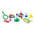 Learning Resources е подходящ за деца над 3 години, като помага за усвояването на научни понятия, включително обща научна лексика, наблюдение, причина и следствие и основна безопасност в научната лаборатория. Елементите изглеждат като истинско оборудване за научни лаборатории, а масивният им дизайн прави оборудването лесно за употреба от малки ръце. С комплектът могат да се извършват лесни за изпълнение от деца научни експерименти, описани в картите с дейности, като използвате материали, които са лесно достъпни у дома или в училище. 10-те карти с дейности могат да се изтриват, а включеното оборудване може да се измива с топла вода и сапун.