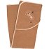 Бебешката хавлия с качулка на Sterntaler е създадена, за да осигури нежна грижа и комфорт още от първата баня на вашето дете. Тя е изработена от пухкав хавлиен плат от 100% органичен памук със сертификат GOTS, който е изключително мек, нежен към чувствителната бебешка кожа и не предизвиква алергични реакции. Материята притежава отлични абсорбиращи свойства, благодарение на които влагата се попива бързо и ефективно, а бебето остава сухо и приятно затоплено след къпане. Практичната качулка предпазва мократа главичка от изстиване и осигурява допълнителен комфорт, като същевременно е украсена с красива апликация на кафява видричка, която придава очарователен и мил вид.